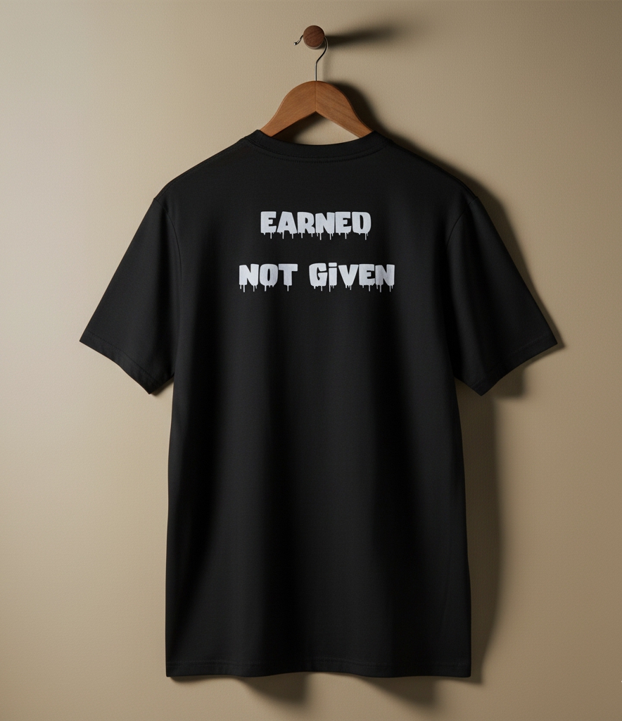 The Earned Tee embodies the spirit of hard work and determination, making it more than just a T-shirt — it’s a statement of mindset and ambition.
